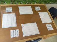 Lindsay C. keeps practice fresh with clever activity tables that feature a clear acrylic sheet on top. She slides Practice Pages, ice cream paper, or other activity sheets underneath, and students write directly on the clear surface with dry-erase markers or crayons. When it’s time for a change, Lindsay simply swaps the pages beneath!