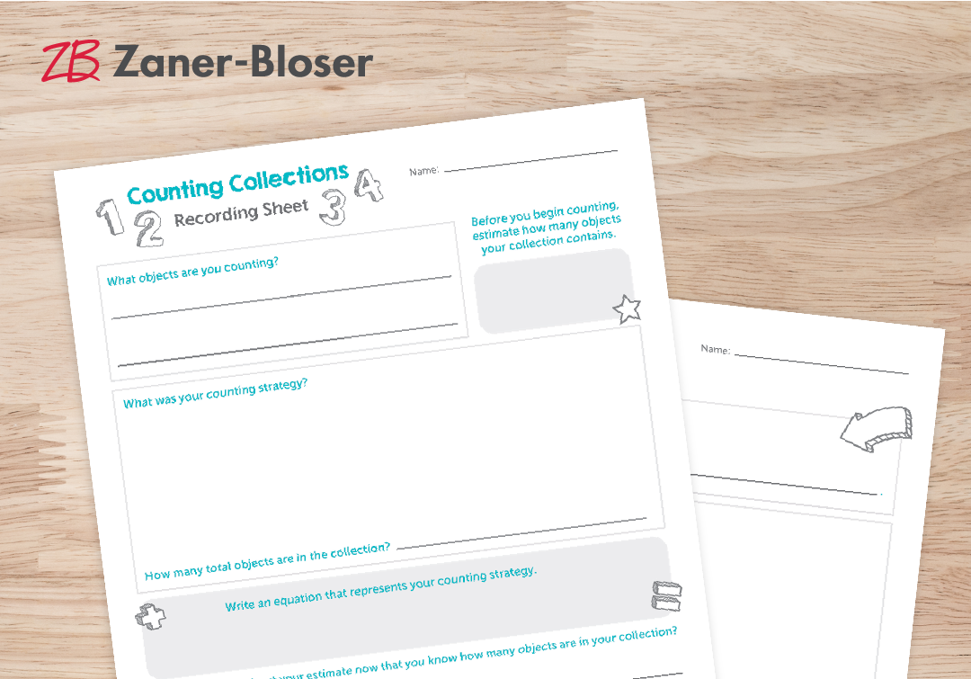 Counting collections activities help students engage with number and math concepts in a concrete way. As understanding grows, so can the task. For instance, you might ask experienced students to draw their counting strategy and write an equation to represent it as well.